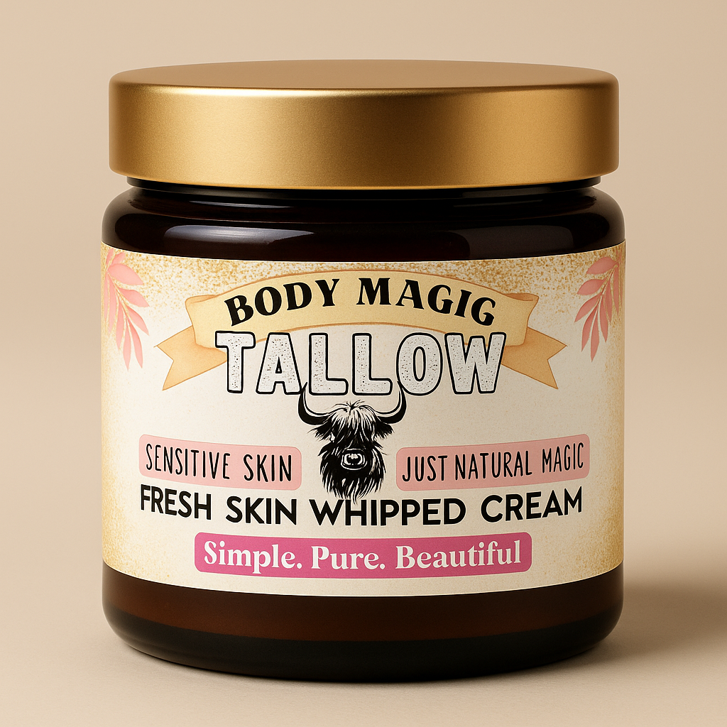 Whipped to perfection and rich in old-fashioned goodness, our Body Magic creams are made with grass-fed tallow, nourishing oils, and skin-loving botanicals. Light as a cloud but deeply moisturizing, they melt right in to soothe dry skin, calm irritation, and leave you feeling soft, smooth, and downright enchanted.