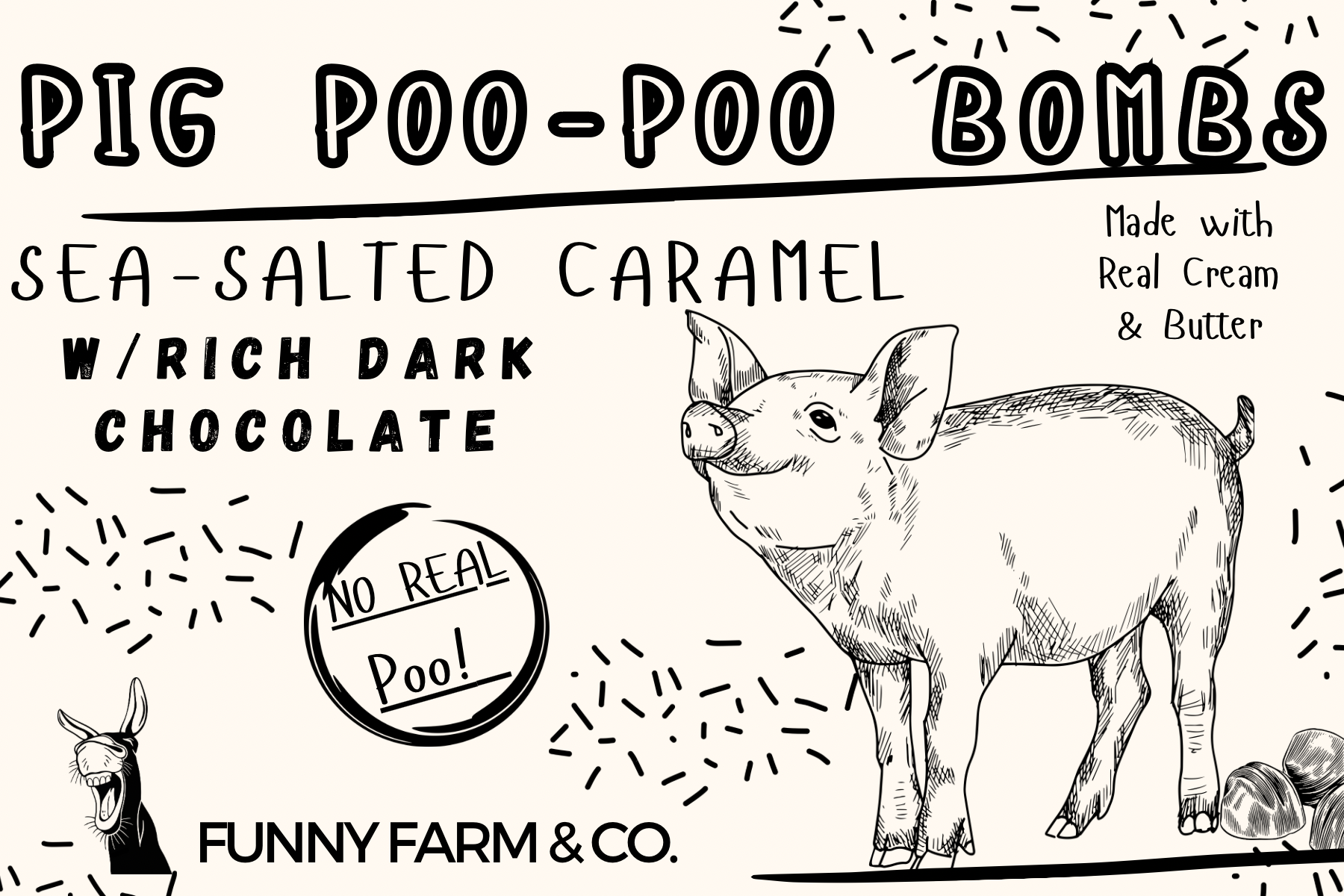 From Donkey Droppings to Chicken Nuggets and Pig Poo Bombs, every pouch is packed with "what-is-this-oh-wow-it's-delicious" flavor. Perfect for party favors, white elephant gifts, or just a laugh with friends (and a mouthful of goodness).