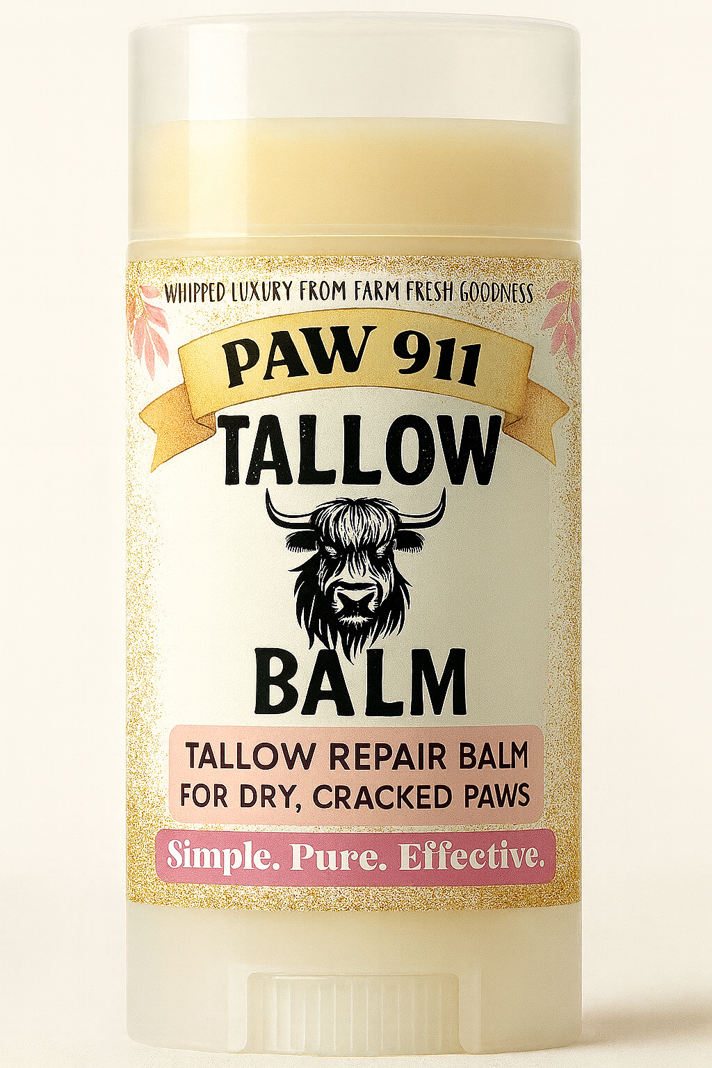 Soothe and protect your furry friend’s paws, noses, and rough spots with our nourishing, all-natural tallow balm. Made from grass-fed tallow, calming oils, and gentle botanicals, this balm hydrates dry, cracked paw pads and noses—without any weird stuff.